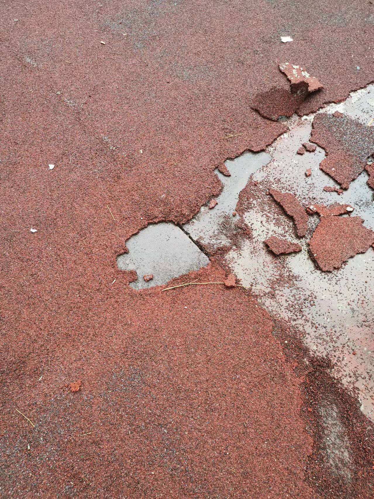 Mostly caused by excessive local pressure or material loss. Potholes will cause uneven force on the feet of athletes during running, easily causing sprains and twists and other serious injuries. For athletes who need precise movements, such as sprinters at the start, the existence of potholes is an enormous safety hazard.